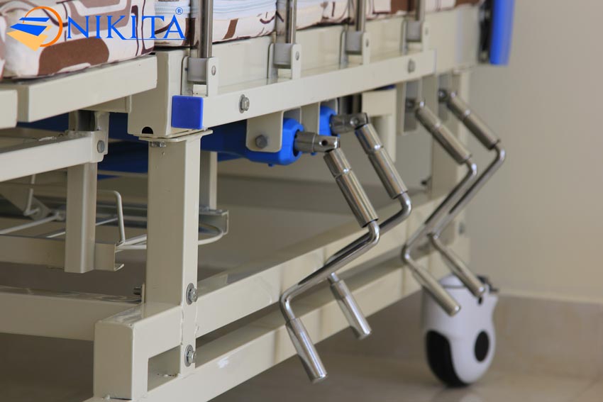 - Giường y tế có bô vệ sinh 4 tay quay NIKITA DCN04 có tem nhãn hiệu NIKITA.